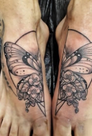 两只脚背纹身一左一右的成对纹身作品