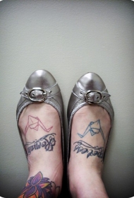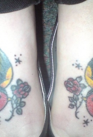 女性脚背彩色两只漂亮的燕子纹身图片