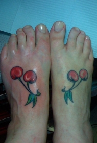 女性脚背彩色大樱桃纹身图案