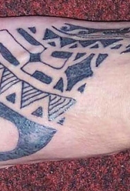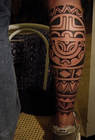 男性腿部黑色波利尼西亚图腾纹身图片