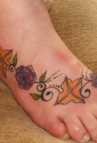 脚背彩色宽脚链秋天花朵纹身图片