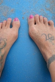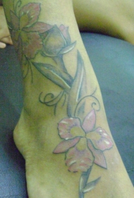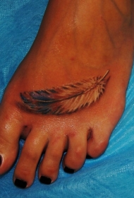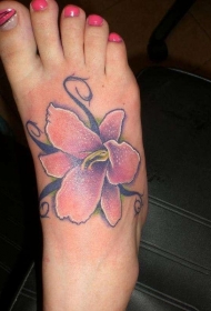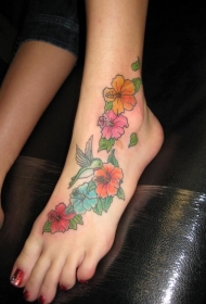 女性脚背水彩墨花朵蜂鸟纹身图片