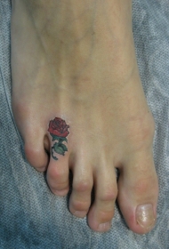 脚趾彩色漂亮的红玫瑰纹身图片