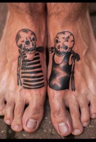 男性脚背简约黑色得骷髅纹身图案