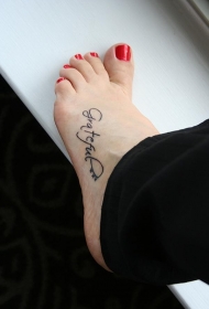 女性脚背简单的英文字母纹身图片