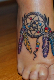女性脚背彩色捕梦网纹身图案