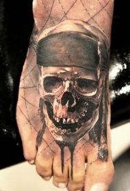脚背棕色骷髅海盗头纹身图案