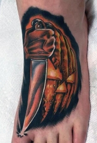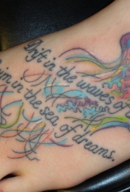 脚背彩色漂亮的松鼠与坚果纹身图案