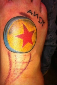 脚背彩色五角星小球纹身图案