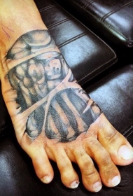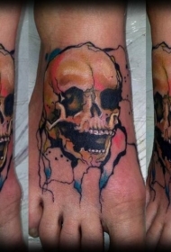 脚背自制像彩色腐烂头骨纹身图案