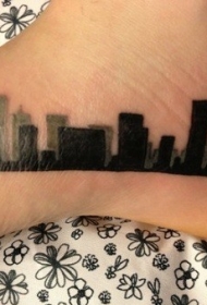 脚部黑色简单的城市景观纹身图案