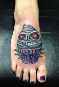 女性脚背令人毛骨悚然的彩色蛋糕纹身