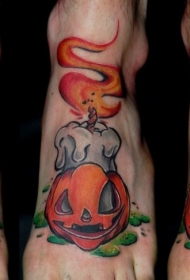 脚背滑稽彩绘蜡烛与南瓜鬼纹身图片