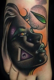 脚背新风格的彩色女子纹身图案
