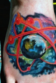 脚背水彩风格的地球小原子纹身图案