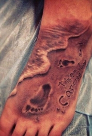 脚背照片风格的沙滩脚印纹身图案