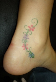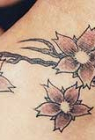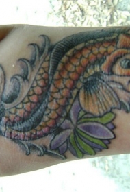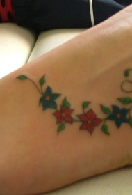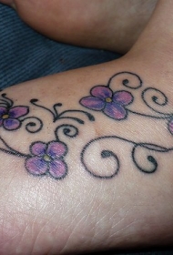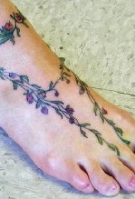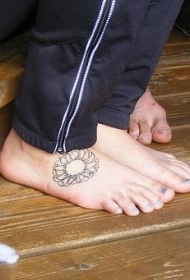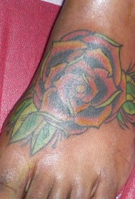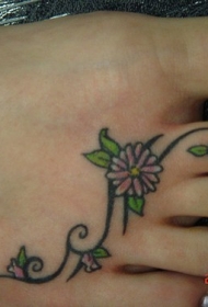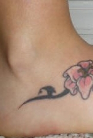 脚背粉红色的芙蓉花与青蛙纹身图案