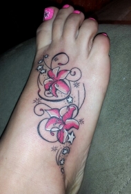 脚背星星花朵彩色纹身图案