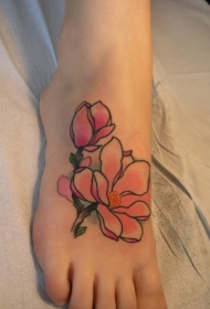 脚背简单的花朵藤蔓纹身图案