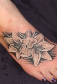 脚背两朵黑灰百合花纹身图案