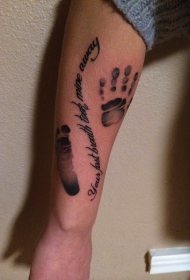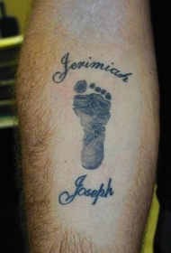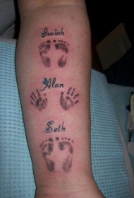 大臂水彩画风格的彩色婴儿足印纹身图案