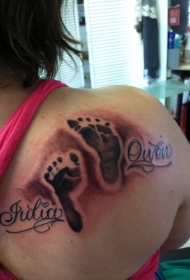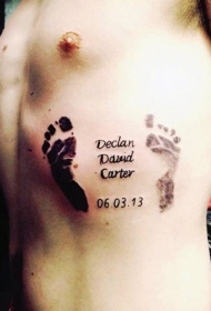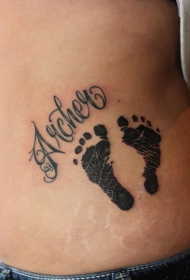 腰部漂亮的宝宝脚印和字母数字纹身图案