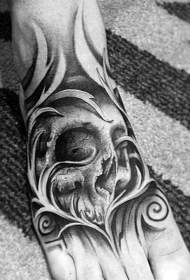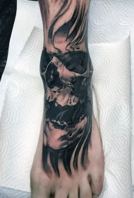 脚背黑色神秘的骷髅纹身图案