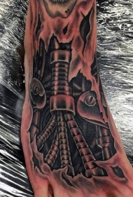 脚背生物力学机械纹身图案