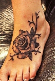 脚背好看的黑灰小玫瑰图案