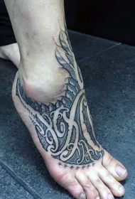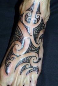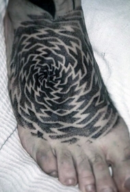 脚背黑色点刺部落图腾纹身图案