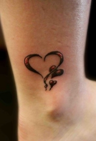 性感的黑色与红色心形脚踝纹身图案