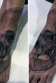 脚背逼真的黑白怪物脸纹身图案