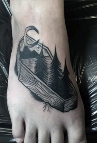 黑白木棺材与月亮树纹脚背身图案