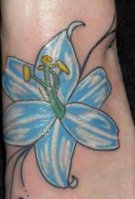 可爱鲜艳的百合花和蝴蝶脚背纹身图案