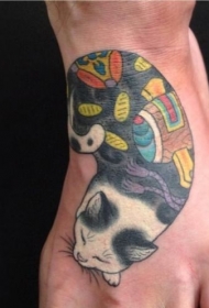 脚背可爱睡觉的猫纹身图案