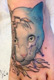 脚背微笑的猫纹身图案