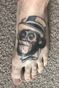 极简线条纹身 男生脚掌上黑色的表情纹身图片
