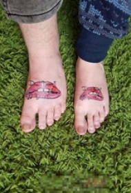男生脚背上彩绘渐变简单线条小动物猫咪纹身图片