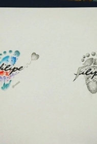彩绘水彩描绘脚丫图案黑色线条花体英文纹身手稿