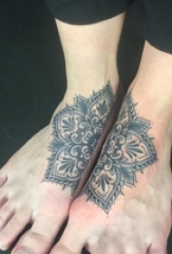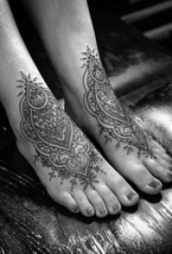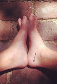 女生脚背上黑色点刺简单线条植物花朵纹身图片