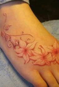 文艺花朵纹身 女生脚背上文艺花朵纹身图片