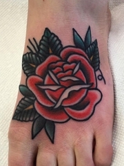脚背上漂亮的传统风格玫瑰花纹身图片