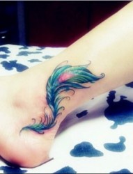 女性脚部高贵孔雀羽毛优雅性感刺青