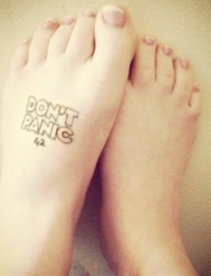 脚部黑白英文时尚刺青