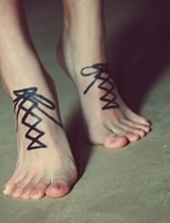 女性脚部鞋带刺青
