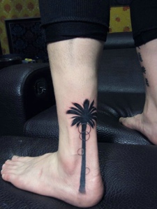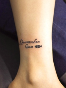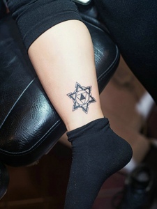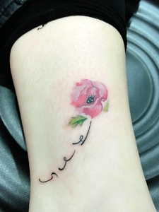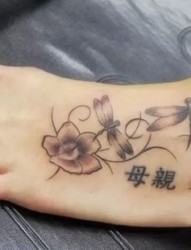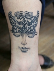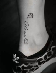 裸脚上的大眼睛萌猴子纹身特别可爱