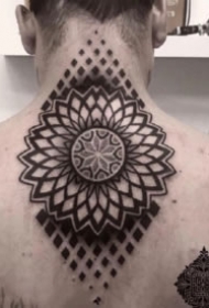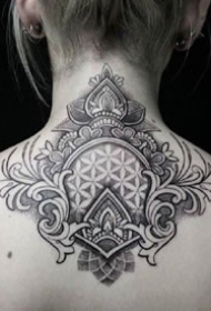 后颈部很适合的点刺梵花纹身图案9张