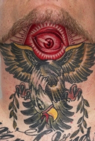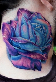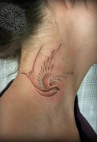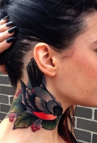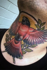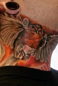颈部绚丽的写实风格彩色飞鸟纹身图案