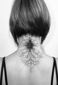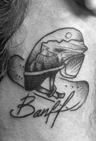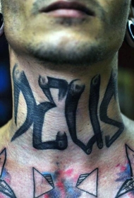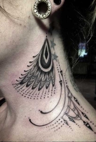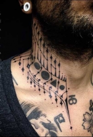 颈部雕刻风格黑色各种饰品和星星纹身图案