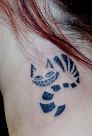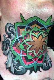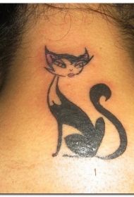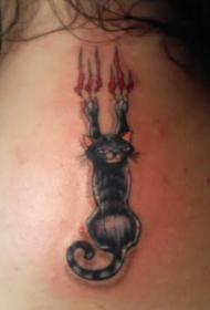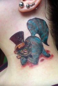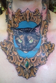 颈部彩色令人毛骨悚然的猫肖像纹身图案